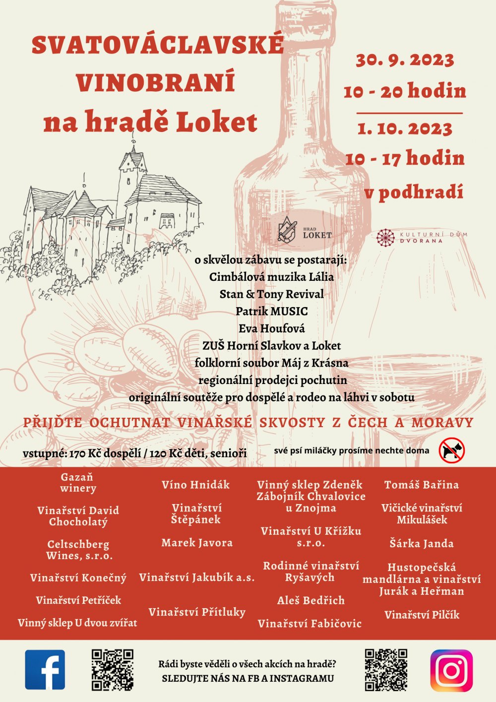 Freuen Sie sich auf Weine mit schönen Farben und köstlichen Geschmacksrichtungen von Winzern aus ganz Tschechien. Gutes Trinken ist oft mit gutem Essen verbunden, und es wird viele Leckereien mit verschiedenen Aromen und Geschmacksrichtungen geben. Für guten Geschmack und Unterhaltung sorgen die Hackbrettmusik Lália, die Revival-Band StanTony, regionale Delikatessenhändler und originelle Wettbewerbe für Erwachsene!