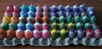Bunte Ostereier gehören auch in Tschechien zum Osterfest dazu. Die ausgeblasenen Eier werden hier „Kraslice“ genannt und werden auf Zweige aufgehängt. Alena Mrázková verziert Eier mit filigranen Wachsmustern und beherrscht auch die Madeiratechnik, bei der zarte Lochmuster in die Eierschalen gebohrt werden. Es entstehen dabei kleine Kunstwerke. Auch farblich passende Kerzen werden angeboten.