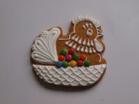 Auf den Ostertisch gehört natürlich auch Süßes. Frau Stogerová bringt ein Sortiment von traditionellen Gebäck mit, das mit Zuckerguss kunstvoll verziert wird. Die Besucher können natürlich gerne zusehen und auf Wunsch kann auch der Name oder ein Gruß als Dekor draufkommen.