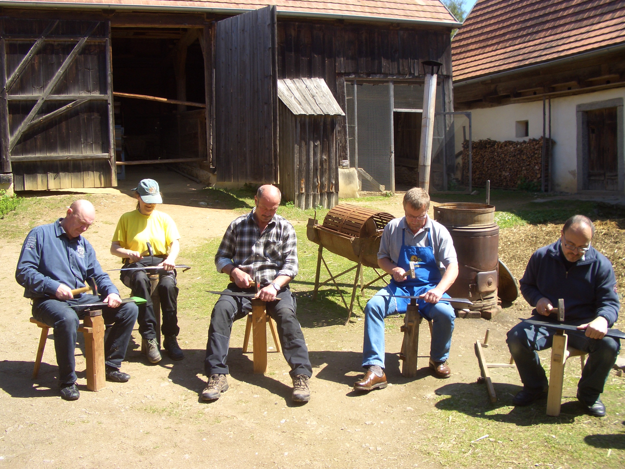 Das Dengeln verlangt schon mehr Erfahrung, weil bei dieser Methode, wenn nicht richtig angewendet, auch Schaden an der Sense entstehen kann. Deshalb ist es sehr wichtig, sich diese Methode einmal von einem echten Fachmann zeigen zu lassen.