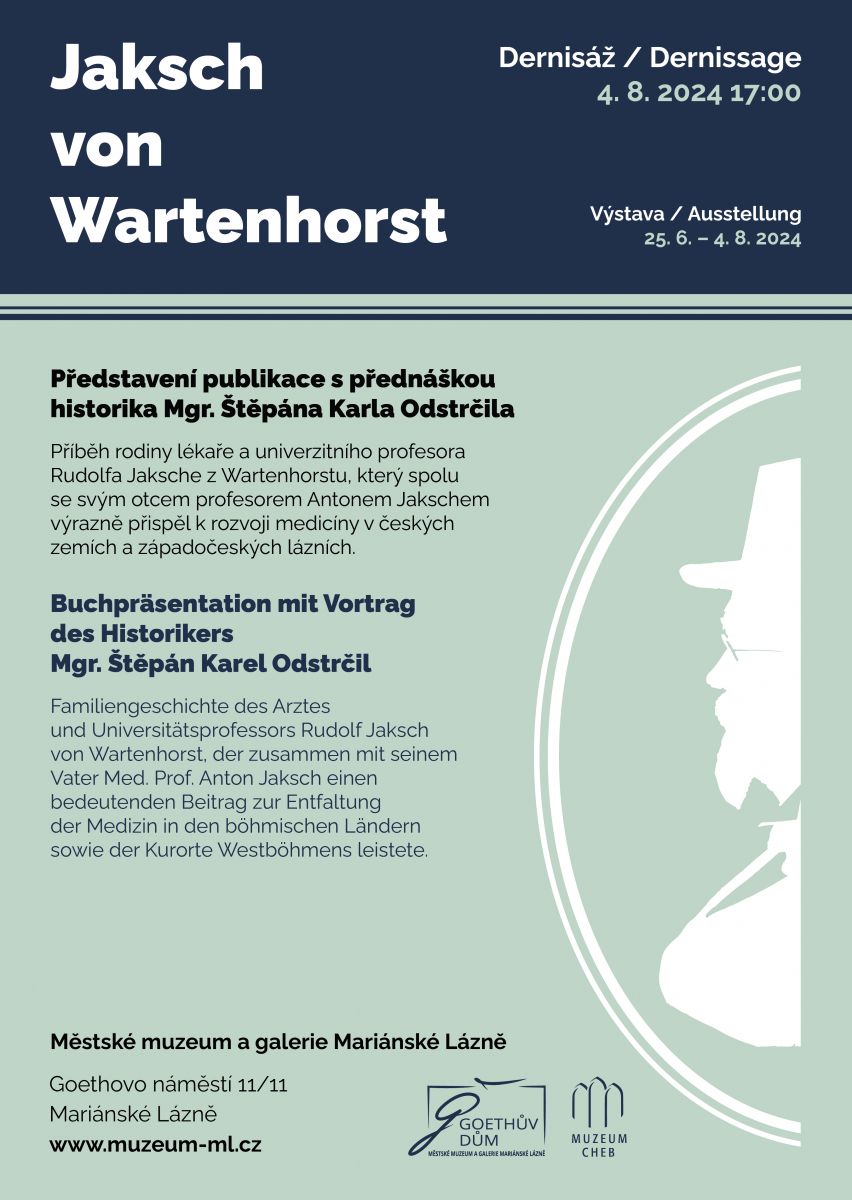 In der aktuellen Ausstellung präsentiert das Museum Mariánské Lázně den Nachlass der Familie von Rudolf Jaksch, der jahrzehntelang von seiner Tochter Gertrude bewahrt wurde. Nach ihrem Tod wurden die historischen Dokumente von Freunden der Familie, der Familie Královec aus Marienbad, übernommen. Dank ihrer eigenen Erinnerungen, die durch das Zeugnis der erhaltenen Dokumente ergänzt werden, sind die Ausstellung und die begleitende Publikation gewissermaßen eine Fortsetzung der Familiengeschichte. Der Historiker des Egerer Museums Mgr. Štěpán Karel Odstrčil hat diese Gelegenheit genutzt, um den Namen Jaksch von Wartenhorst wieder ins Bewusstsein der Öffentlichkeit zu bringen.