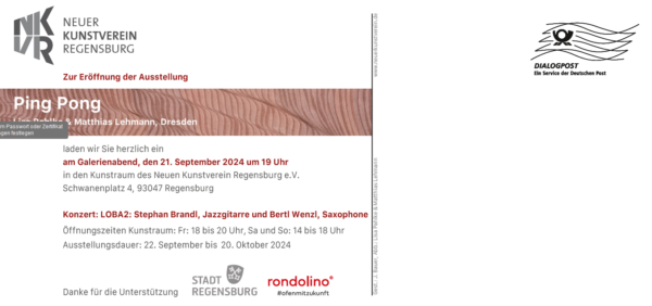 Arbeitsprozesses der beiden Künstler*innen Lisa Pahlke und Matthias Lehmann, der sich mit den materiellen und statischen Eigenschaften von Papier und dessen visuellen Möglichkeiten der Bemalung auseinandersetzt, werden wie in einem PING-PONG-Spiel die Ergebnisse dieses Dialoges sichtbar und erlebbar. Dabei tauschen sie mitunter die gewohnten Rollen und Perspektiven. Der, der sonst baut und konstruiert wird fiktiv zum Zeichnenden und die, die sonst zeichnet, greift in Vorgänge des Konstruierens und Bauens ein. So entstehen in diesem Ablauf einzelne Arbeiten, serielle Folgen oder raumbezogene Gebilde aus Papier.