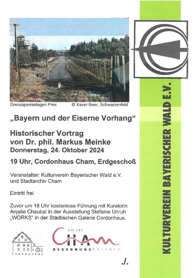 Der Eiserne Vorhang – mehr als 40 Jahre verlief er rund 800 Kilometer in der DDR und der Tschechoslowakei entlang der Landesgrenze zu Bayern und trennte den Freistaat von seinen Nachbarregionen im Norden und Osten ab. Stacheldrahtzäune, Wachtürme, Minenfelder und schwer bewaffnete Posten prägten hier wie dort das Bild der anderen Seite. Und doch wurde die bayerisch-tschechoslowakische Grenze aus westlicher Perspektive oftmals anders wahrgenommen als ihr ostdeutsches Pendant. War der tschechoslowakische „Eiserne Vorhang“ aber tatsächlich anders? Und woher kommt diese unterschiedliche Wahrnehmung, die in Erinnerungen auf der bayerischen Seite teils bis heute noch fortwirkt? Auf diese und weitere Fragen wird Dr. phil. Markus Alexander Meinke, wissenschaftlicher Angestellter beim Bezirk Oberpfalz und Betreuer dessen grenzüberschreitender Kooperationen mit der Tschechischen Republik, eingehen.
