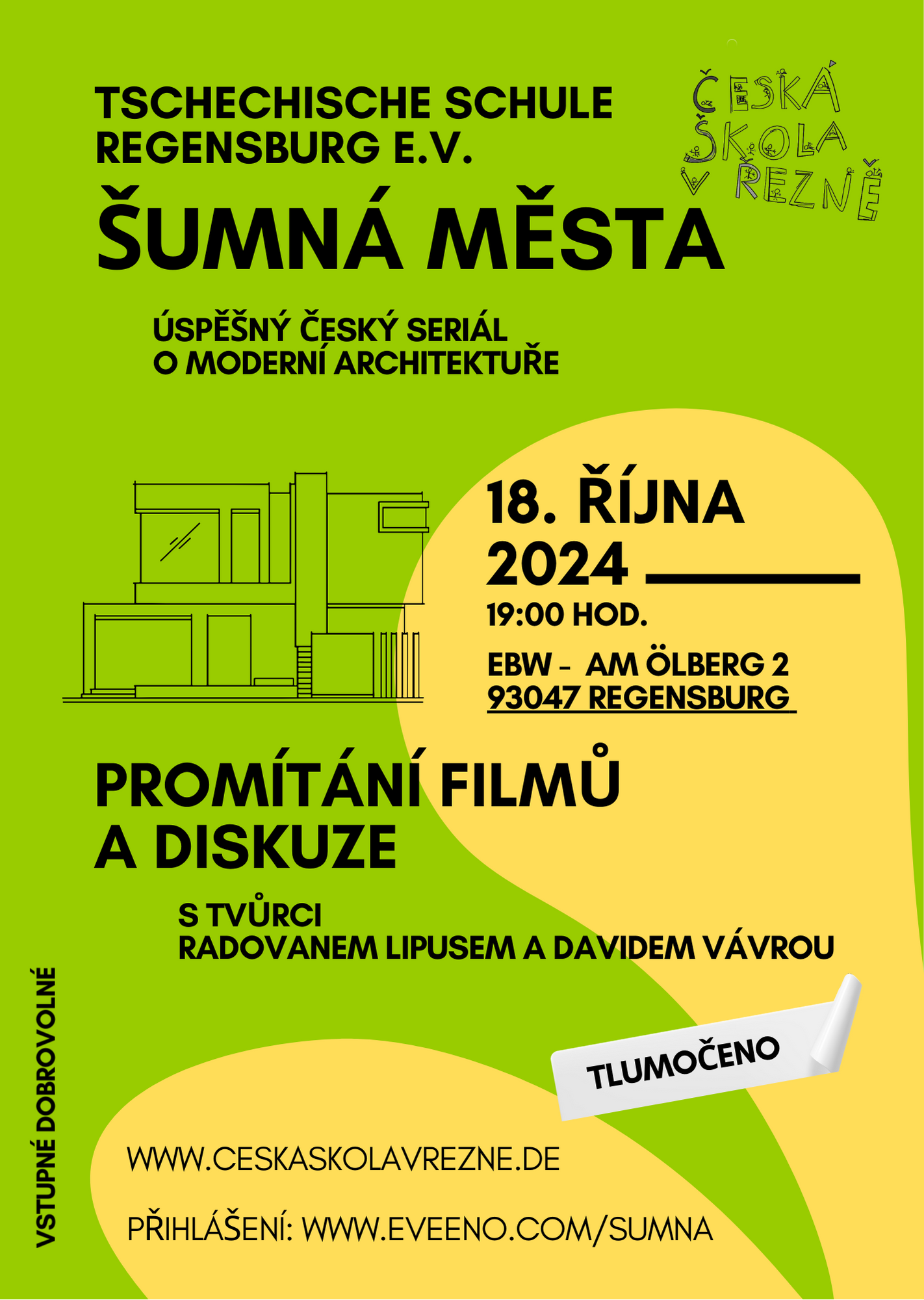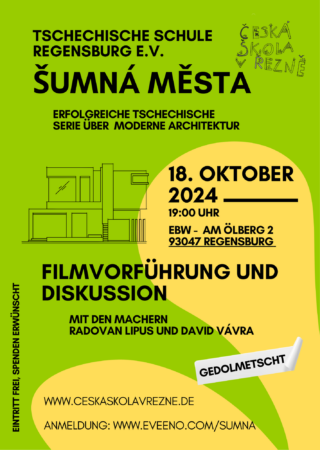 Die Tschechische Schule Regensburg e.V. präsentiert die erfolgreiche tschechische Serie über moderne Architektur Šumná města mit einer Filmvorführung und Diskussion mit den Machern Radovan Lipus und David Vávra.