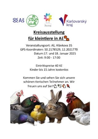 Wir laden Sie herzlich zur traditionellen Kreischau von Kleintieren ein, die am 17. und 18. Januar 2025 in Aš in der Straße Hlávkova 35 stattfinden wird.