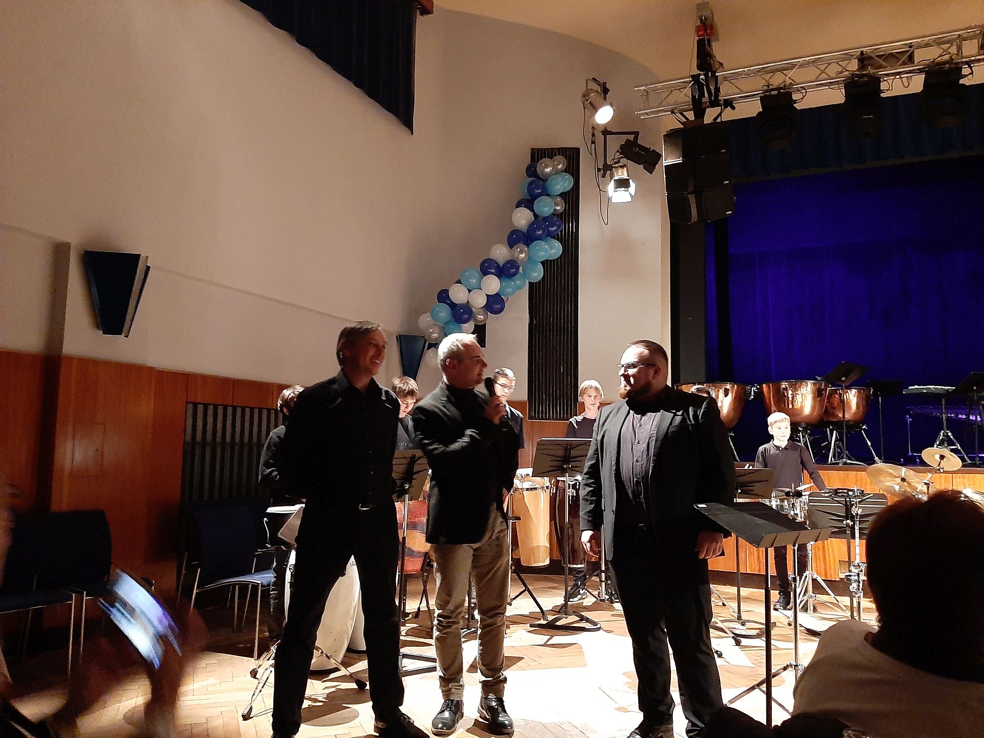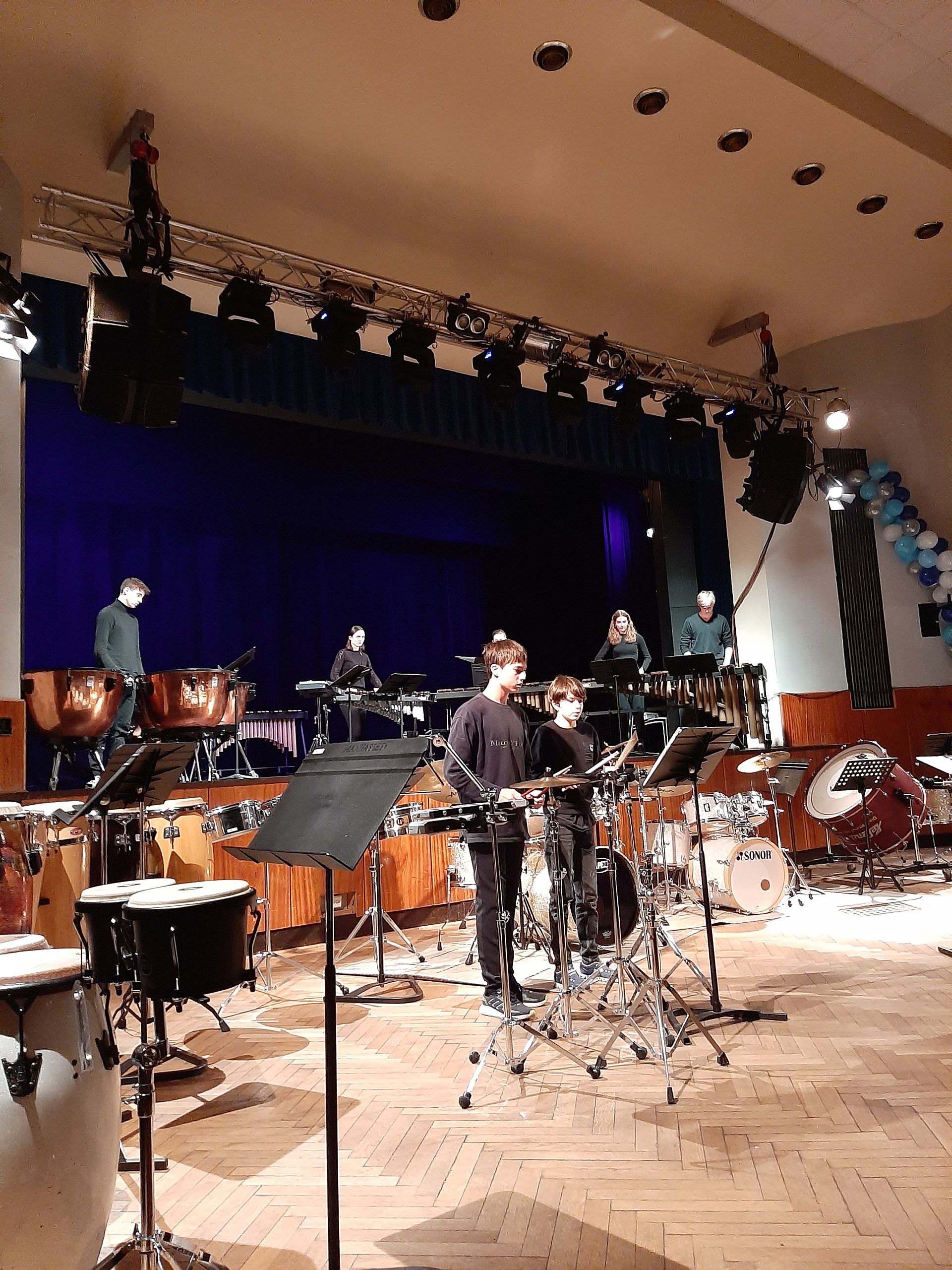 16 Schülerinnen und Schüler der der beiden Schulen hatten sich vom 21. bis 23.10.2022 im Centrum Bavaria Bohemia in Schönsee getroffen, um gemeinsam im Rahmen einer Begegnungsveranstaltung des Projekts “Kultur ohne Grenzen – Begegnung Bayern – Böhmen” zu musizieren. Dabei probten sie gemeinsam auf verschiedenen Percussion-Instrumenten und Schlagzeugen einige Stücke, welche sie zunächst bei einem Konzert in Schönsee und am Montag, 29.11.2022 bei einer rund einstündigen Veranstaltung in Domažlice der breiten Öffentlichkeit vorgestellt haben. Die Besucher waren begeistert.