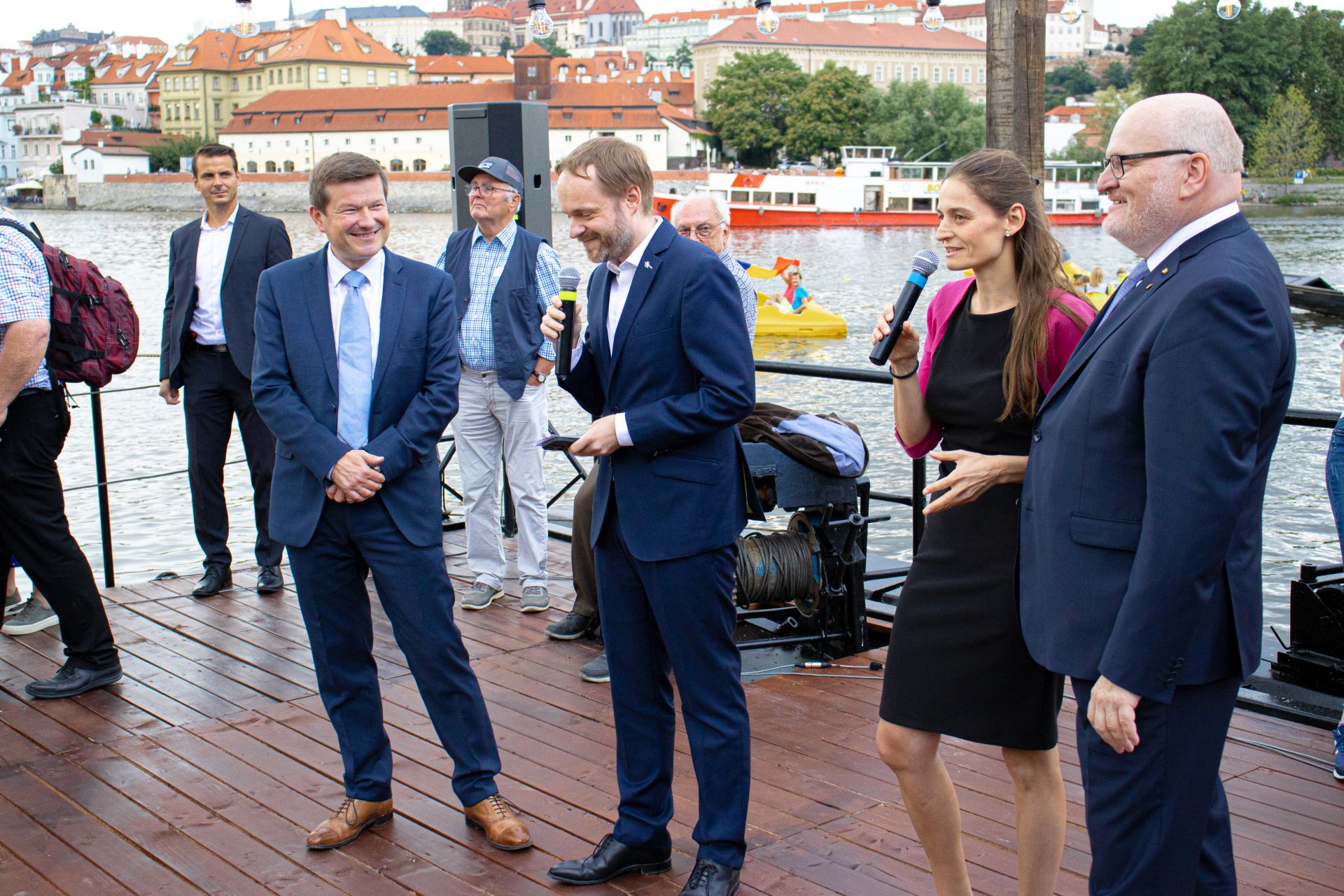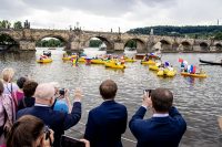 Der tschechische Außenminister Jakub Kulhánek freute sich über seine verlorene Wette gegen die Ackermann-Gemeinde und Sdružení Ackermann-Gemeinde. Das "Happenig auf der Moldau" war ein Erfolg, die schwimmenden Objekte zeigten die 27 Flaggen der EU-Mitgliedsstaaten.