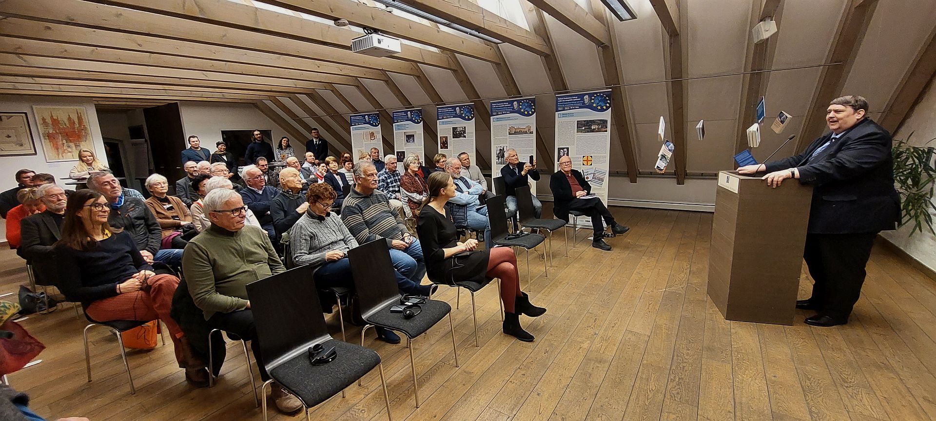 Politische Energie aus europäischem Denken schöpfen. Diese Kraft, die Bernd Posselt, Präsident der Paneuropa-Union in seiner Grußbotschaft ausstrahlt, beeindruckt alle bei der Ausstellungseröffnung im Centrum Bavaria Bohemia (CeBB).