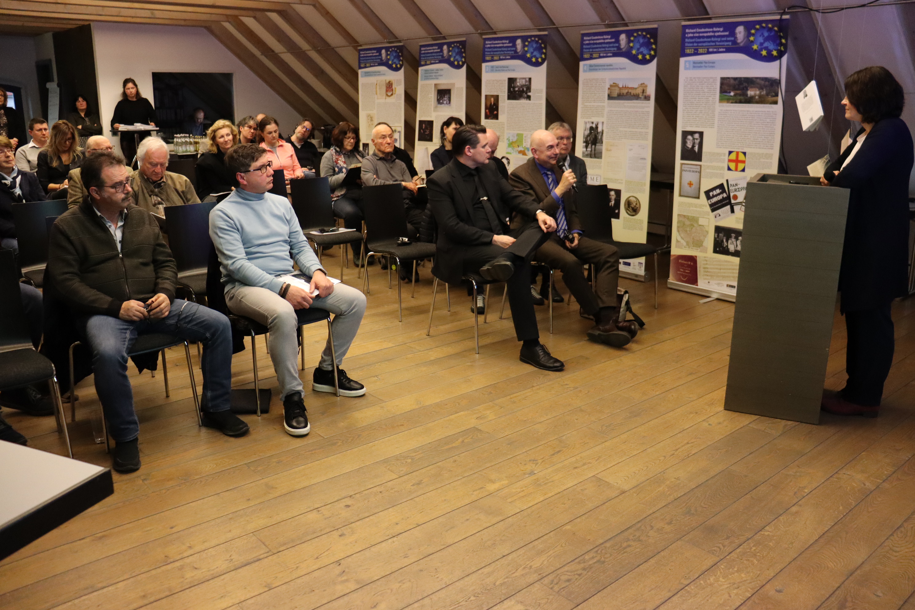 Trotz Regenwolken auf dem Weg zur Jahresbilanzvorstellung – im neuen Format mit Publikum – leuchtet am Eingangsportal des Centrum Bavaria Bohemia (CeBB) das Schild „Koordinierungsstelle für die bayerisch – tschechische kulturelle Zusammenarbeit“. Diese Ende 2015 vom damaligen Staatsminister Ludwig Spaenle übertragene Funktion, weiter das jetzt endende, im Haus von StM Albert Füracker angesiedelte Projekt Kulturstadt Bayern-Böhmen und die 2021 vom gleichen Ministerium übertragene, bis 2024 laufende Aufgabe als Informations-, Beratungs- und Vernetzungszentrum Grünes Band, sind Aushängeschilder. Sie zeigen, welches Vertrauen das CeBB in München in Ministerien, Staatskanzlei und Landtag genießt. Die fraktionsübergreifende Wertschätzung bestätigt der grüne MdL Jürgen Mistol aus Regensburg, gerne Gast im CeBB, in seinem Diskussionsbeitrag. Die weiteren Wortmeldungen aus dem Publikum nach der Vorstellung der Jahresbilanz durch Leiterin Dr. Veronika Hofinger spiegeln das breite Spektrum wieder, in dem das CeBB agiert. Kooperationspartner wie Josef Schönhammer von der Akademie Ostbayern – Böhmen in Neunburg v.W. und Regionalmanager Christian Karl von der ILE Brückenland Bayern-Böhmen loben die Zusammenarbeit. Manfred Beer, Herrmann Wallisch und Klaus Habl, ehrenamtlich beim Wochenenddienst engagiert, berichteten über ihre guten Gespräche und Erfahrungen mit Gästen, die es schätzen, dass die Türen auch an Samstagen und Sonntagen offen stehen. Davon profitiert die Tourist-Information Schönseer Land mit ihrer während der Woche hauptamtlich von der VG besetzten Anlauflaufstelle, wie Bürgermeister Gerald Reiter (Stadlern) in seinem Grußwort unterstreicht.