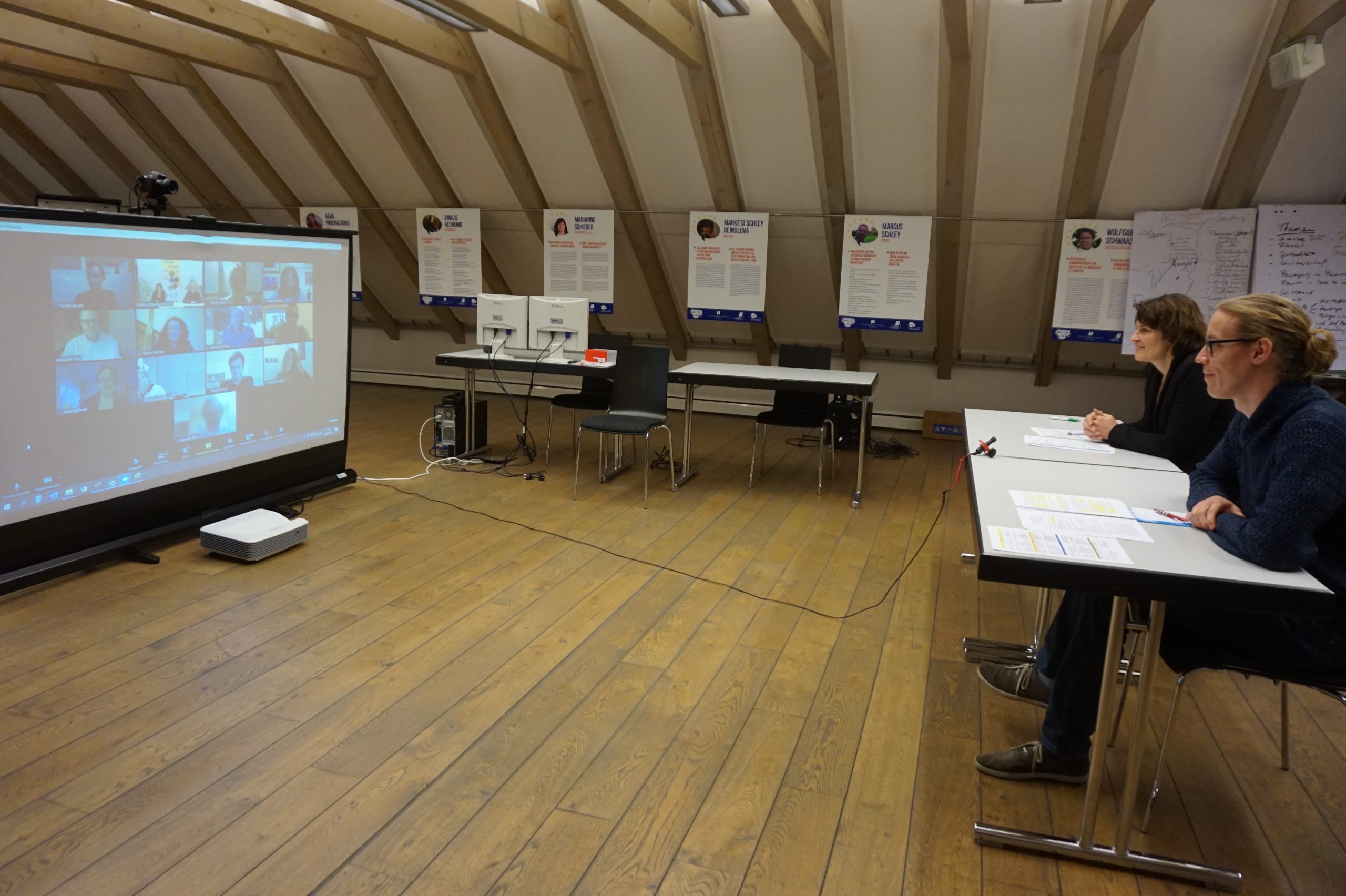 Mit insgesamt 55 Anmeldungen übertraf das Pilotprojekt bereits im Vorfeld die Erwartungen der Veranstalter und offenbarte das große Bedürfnis nach Erfahrungsaustausch und Zusammenarbeit. Am 21.01.2021 ging es in dem von CeBB-Mitarbeiter David Vereš mit viel Erfindergeist eingerichteten „Digitalstudio“ des Centrum Bavaria Bohemia ans Werk. Herausforderungen, Erfahrungen und Erwartungen hatte die deutsch- und tschechischsprachige Teilnehmergruppe bereits im Vorfeld der Veranstaltung auf einer digitalen Pinnwand festgehalten. In digitalen Kleingruppen und im Plenum diskutierten die Teilnehmenden pandemiegerechte Veranstaltungsformate, bewährte Online-Anwendungen, sowie Unterstützungsbedarfe. Kreative und innovative Praxisbeispiele wurden von der Initiative KulturBagage aus dem Bayerischen Wald und der Kultur- und Kreativzone DEPO2015 in Pilsen vorgestellt.