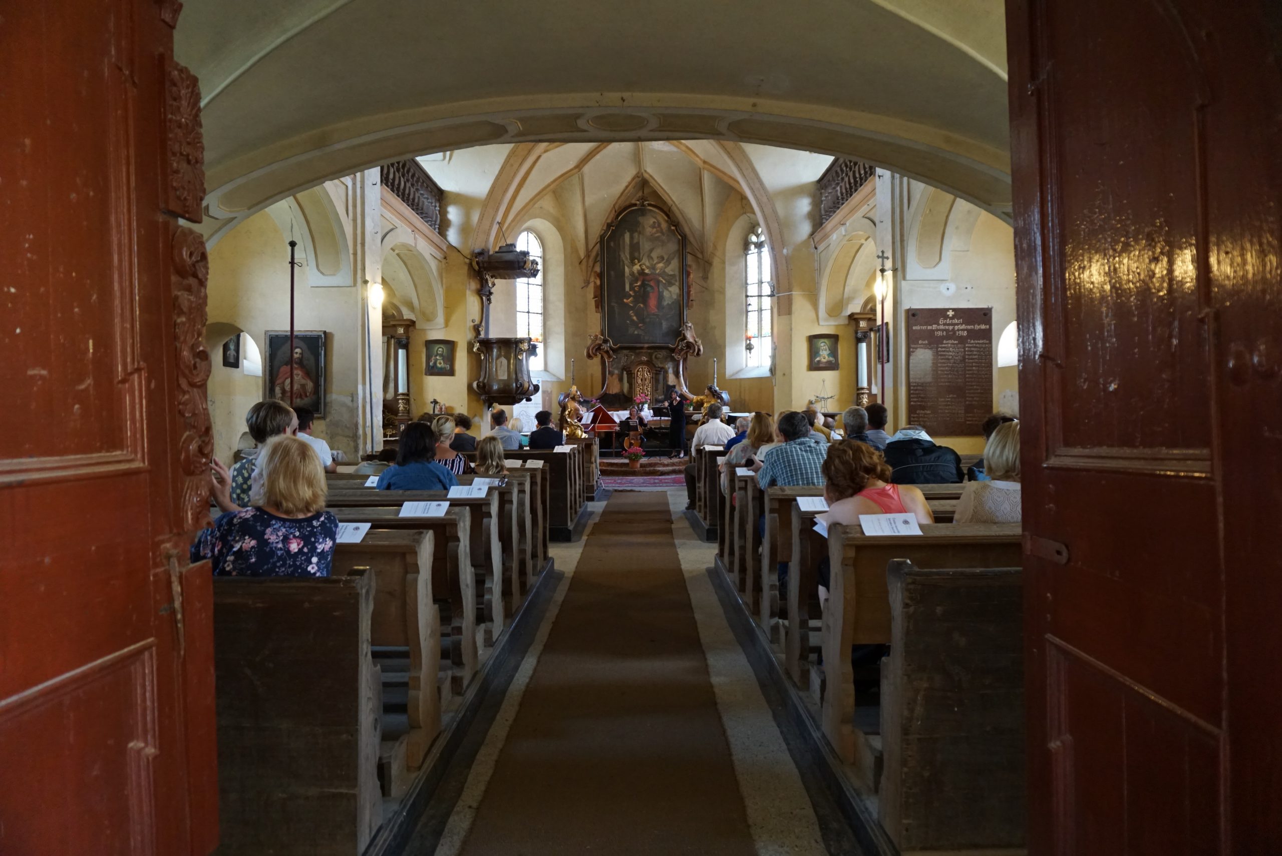 Am Samstag, den 01.08. fand in der Jakobuskirche in Bruck am Hammer (Brod nad Tichou) das "Literarisch-musikalische Kaleidoskop" anlässlich der Wiederaufstellung zweier barocker Apostel-Altarskulpturen von Jakub Artschlag aus Tachau (Tachov) nach deren Restaurierung statt. Das kulturelle Programm wurde von Jan Šícha und dem Ensemble Alcinelle begleitet.