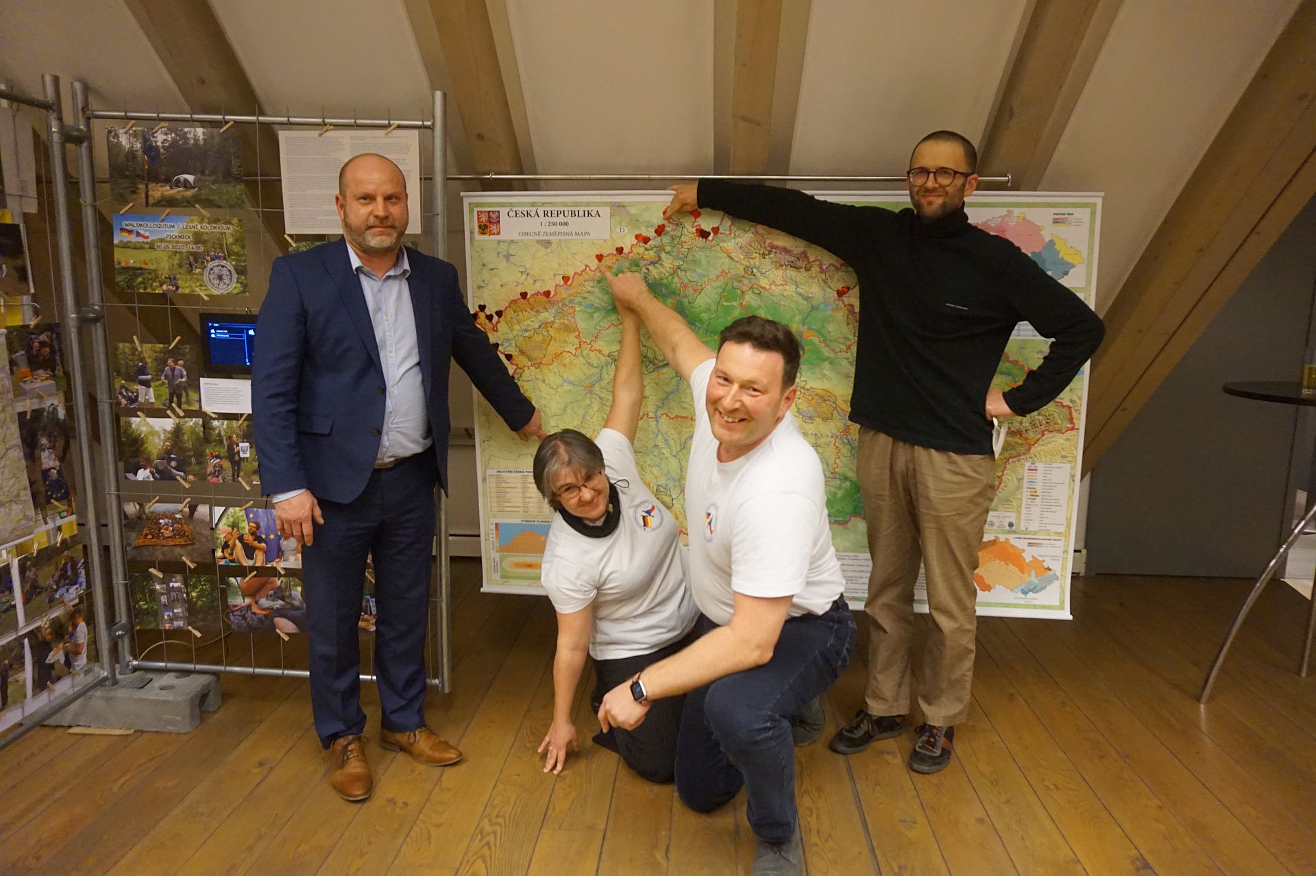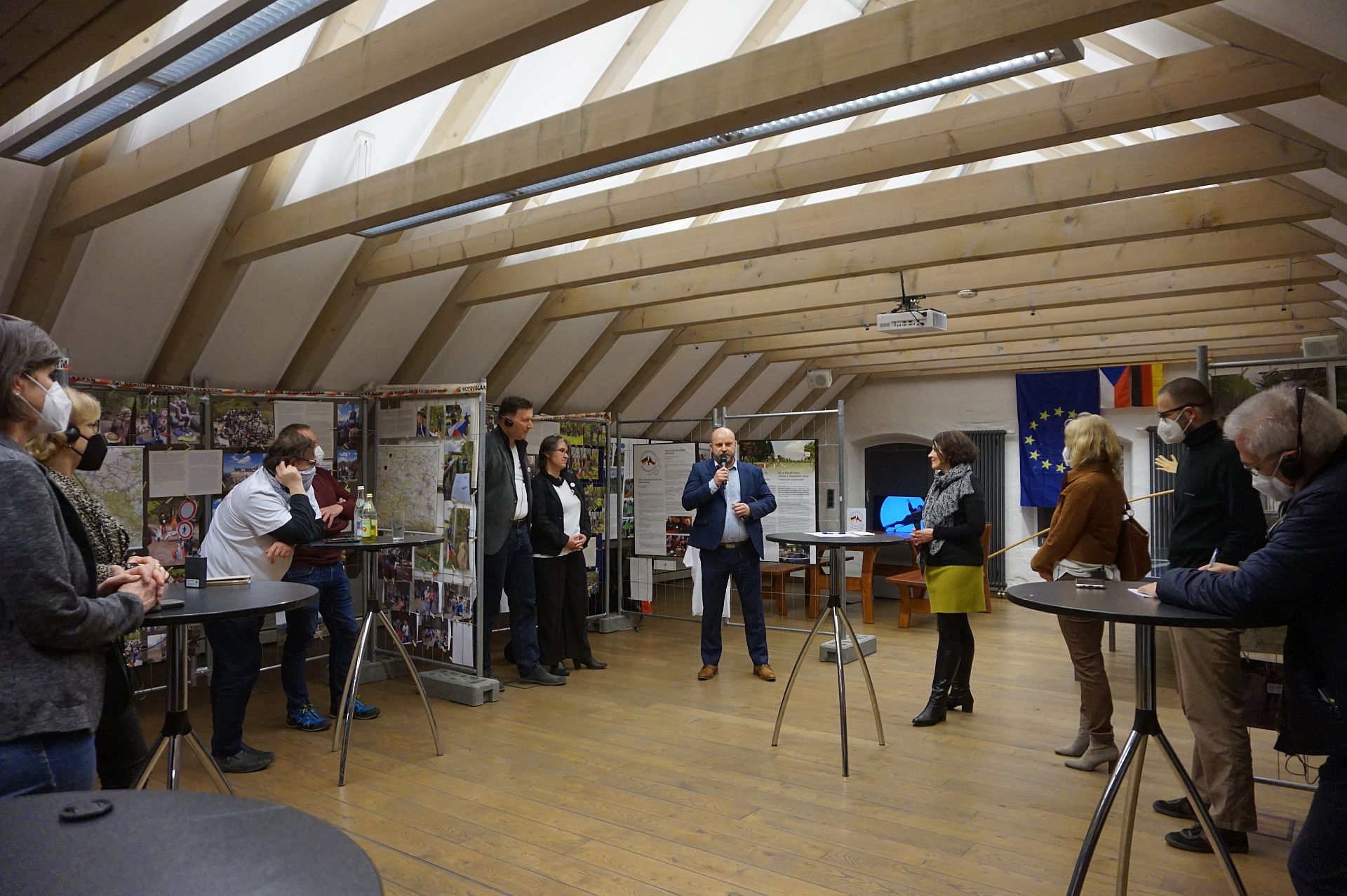 Ein herzlicher Willkommensgruß von Veronika Hofinger galt weiter zwei besonders engagierten Akteuren, aus denen es bei der Ausstellungseröffnung nur so heraussprudelte, wie sie unter dem Lockdown litten und ihn mit den Samstagstreffen an markanten Grenzorten erträglicher machten. Einer war Bürgermeister Václav Bernard aus Všeruby (Neumark), Nachbarort und Partnergemeinde von Eschlkam im Landkreis Cham. „Die Hälfte der Berufstätigen in meiner Gemeinde mit rund 800 Einwohnern arbeitet in Deutschland. Seit 1990 haben wir endlos viel verknüpft, für uns gab es, Bayern nur ein paar Schritte entfernt, die Grenze in unserem Bewusstsein nicht mehr.“ Er erzählt von den engen Freundschaftsbanden in den Landkreis Cham und von den bayerisch-tschechische Familien, die daraus erwuchsen. Dann von heute auf morgen alles dicht im Corona-Lockdown. Da war ihm schnell klar, bei der Aktion Samstage für die Nachbarschaft sind wir dabei.