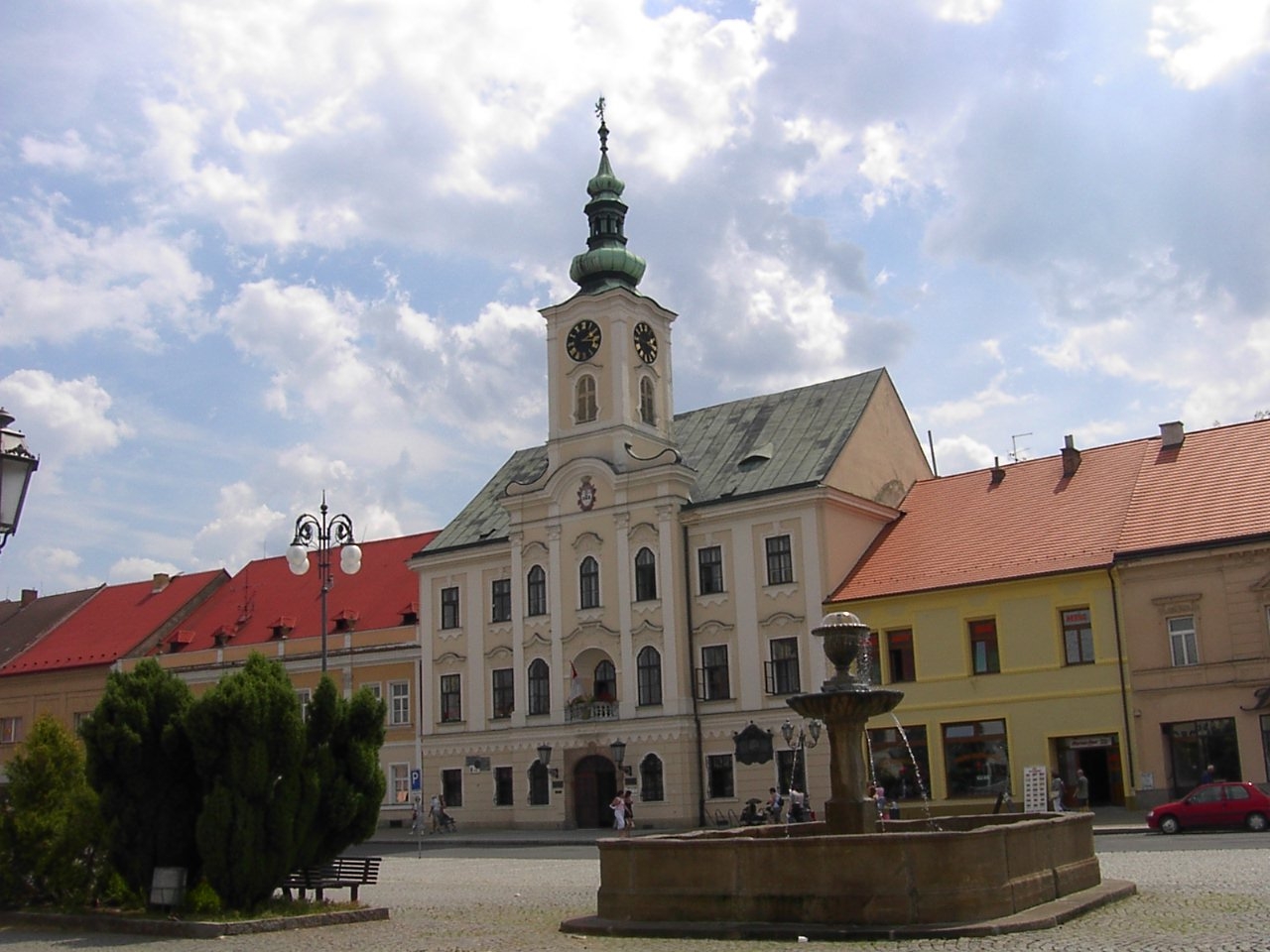 – Den Brunnen auf dem T.G.-Masaryk-Platz: ein quadratischer steinerner Barockbrunnen aus dem Jahr 1827 mit einer Säule mit Vase in Muschelform in der Mitte und Wasserspeiern.