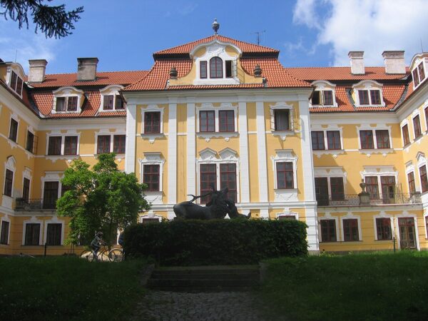 Am Ufer des Sees Hejtman steht ein barockes Schloss aus dem Jahr 1710. Seine heutige Gestalt erhielt es durch Umbauten gegen Ende des 19. und Anfang des 20. Jahrhunderts. Es ist von einem herrlichen Park mit einer Vielzahl exotischer Bäume und Sträucher und Skulpturen aus dem 18. und 19. Jahrhundert umgeben. Der Park ist der Öffentlichkeit zugänglich, das Schloss dagegen befindet sich in privatem Besitz. Eine weitere herausragende architektonische Sehenswürdigkeit ist die Barockkirche Mariä Himmelfahrt auf dem Hauptplatz. Sie stammt aus dem Jahr 1745.