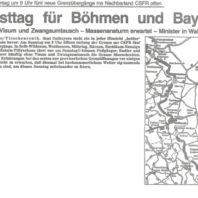 Ihre erste Station hätte die Sonderausstellung im Gelebten Museum in Mähring gehabt, wo am 01. Mai die großen Feierlichkeiten zu 30 Jahre Grenzöffnung stattfinden sollten (hier fand 1990 zuerst eine Probegrenzöffnung am 30. April und 1. Mai statt, bei der über 20.000 Menschen diese Tage für einen Besuch des Nachbarlandes nutzten). Anschließend wäre die zweisprachige Ausstellung weiter zur Europa-Woche nach Waldsassen, nach Bärnau und auch nach Tschechien gewandert.
