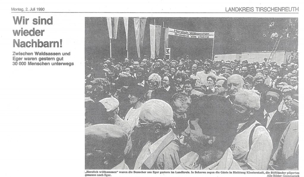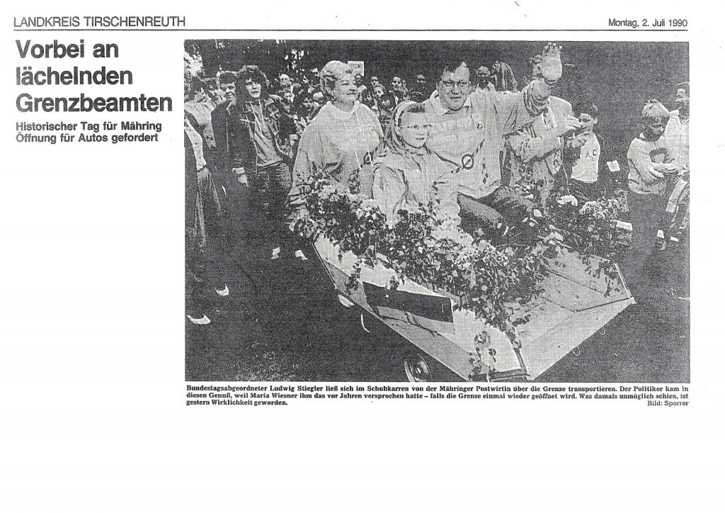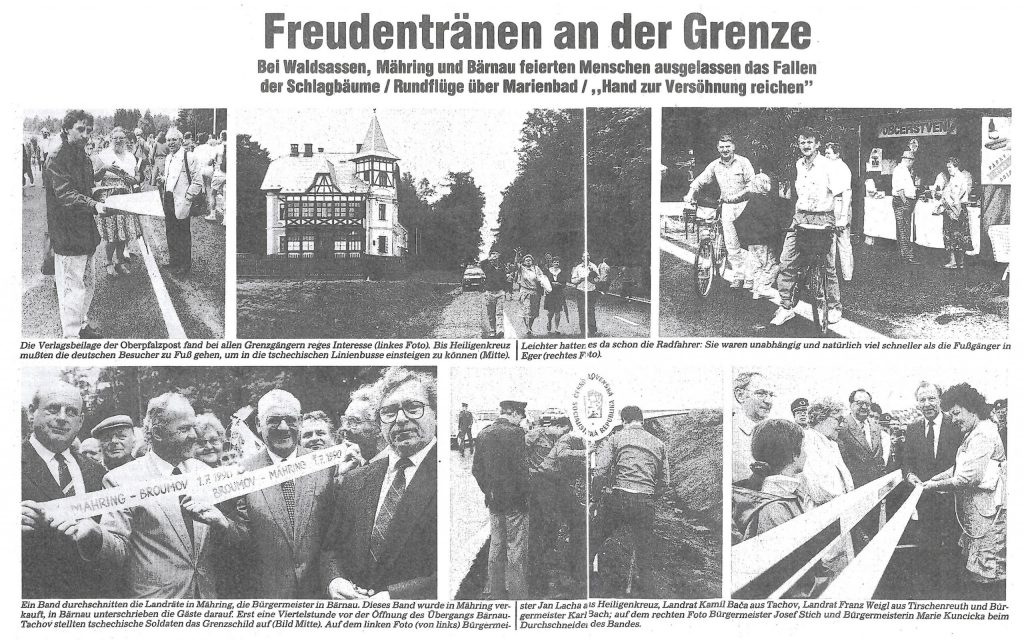 Bei der Öffnung des Übergangs Hundsbach am 1. Juli 1990 waren über 30.000 Menschen unterwegs. Zu Fuß, mit dem Rad oder dem Mofa erkundeten sie das Nachbarland. Bei den offiziellen Feierlichkeiten waren neben den Bürgermeistern aus Waldsassen und Eger auch der damalige Bundesinnenminister Wolfgang Schäuble, sein Amtskollege aus der Tschechoslowakei Jan Langos und Bayerns Innenminister Edmund Stoiber vor Ort.