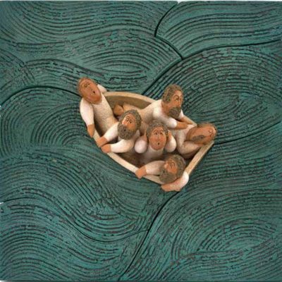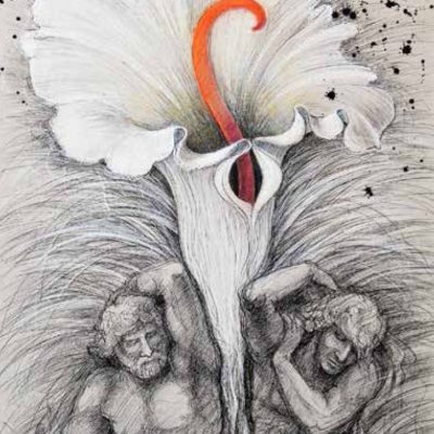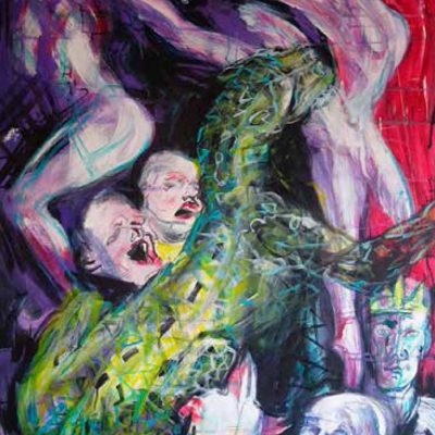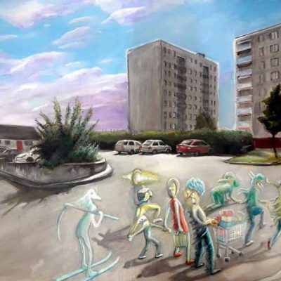 Wir hatten nicht geahnt, dass es mit unserem Pfingstprojekt schließlich alles anders kommen wird. Es erschien ein anderes Bibelkapitel, die Offenbarung des Johannes, die Apokalypse. Die vier apokalyptischen Reiter warten auf ihren Ausfall und zusammen mit ihnen ordnen sich andere, die unseren, ganz gegenwärtigen, zum Beispiel die Unersättlichkeit, Rücksichtslosigkeit, Ordnungslosigkeit… Es gibt viele. Hoffentlich hällt sie die feste Mauer der Zehn Gebote auf.