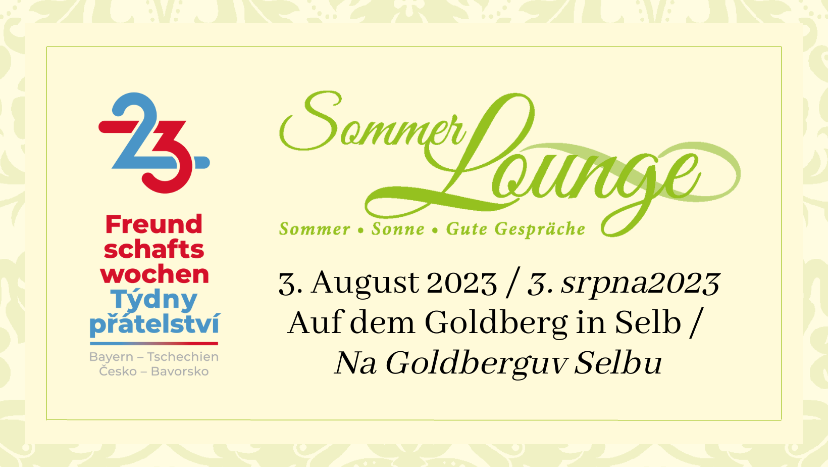Im Rahmen der bayerisch-tschechischen Freundschaftswochen findet am 3. August 2023 auf dem Goldberg in Selb die Sommerlounge statt. Tschechische Aussteller können noch bis zum 29. Juni ihre Stände anmelden und kostenlos dabei sein.