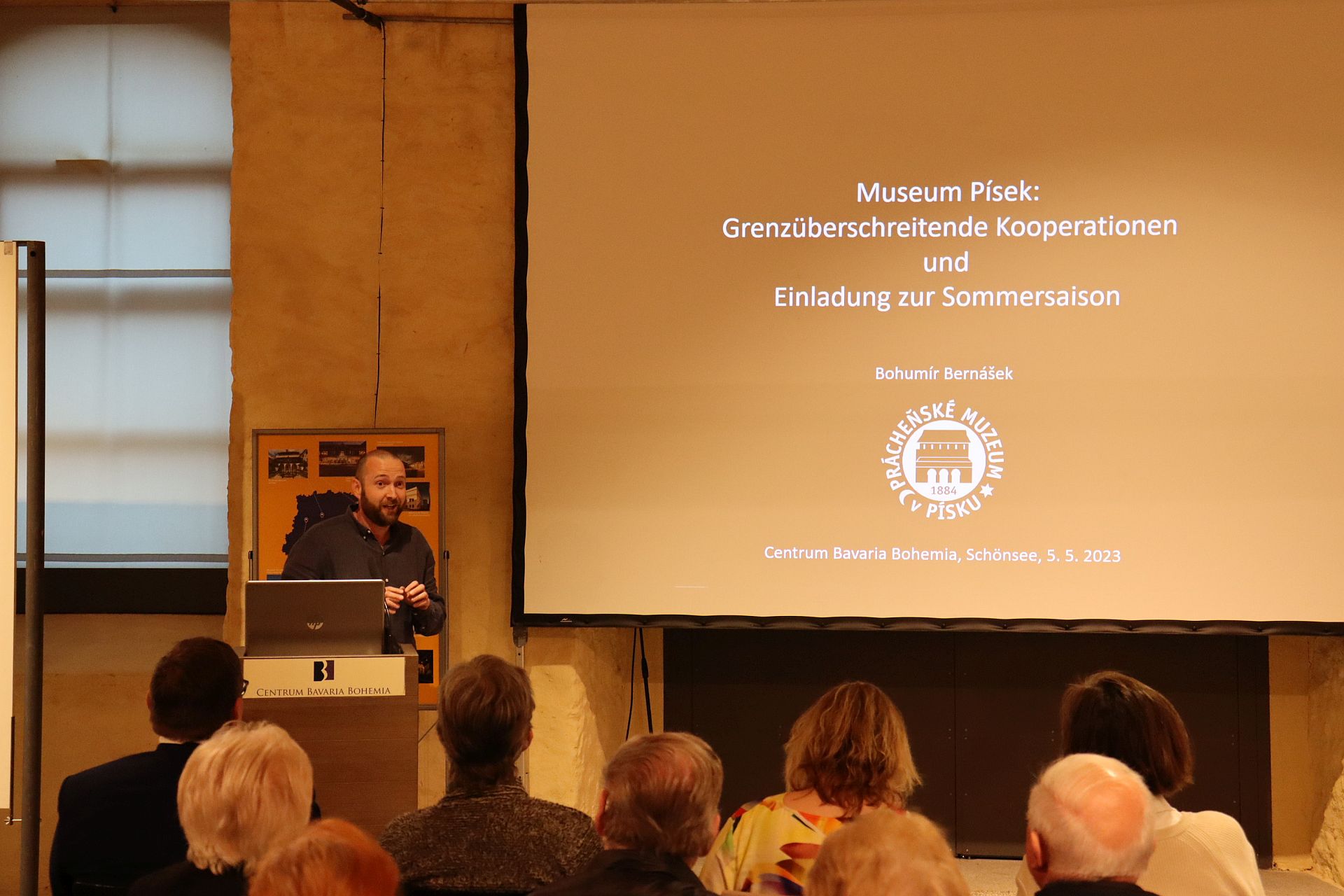 Trägervereinsvorsitzender Landrat Thomas Ebeling erinnert eingangs in seinem per Video eingespielten Grußwort an die bis in die Anfangsjahre des CeBB zurückgehenden Verbindungen, genauso wie stellv. Bezirkshauptmann Pavel Hroch, den nicht nur engagierte Kultur- und Tourismusverantwortliche begleiteten, sondern auch einen Caterer, der mit einem warm / kalten Buffet für den genussvollen Schlusspunkt sorgt.